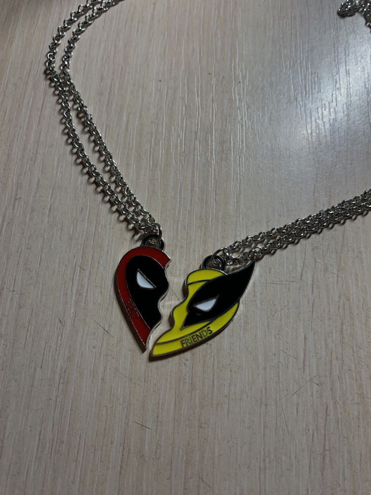 Парный кулон Дэдпул и Росомаха Marvel Comics — это идеальный аксессуар для всех поклонников знаменитой франшизы. Этот комплект уникальных подвесок привнесет нотку оригинальности в ваш повседневный образ и станет отличным способом выразить вашу любовь к культовым персонажам Marvel Comics.