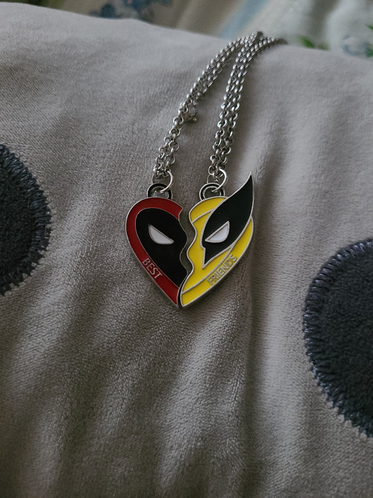 Подвеска выполнена в виде парных кулонов, представляющих собой фигурки Дэдпула и Росомахи — двух самых популярных героев вселенной комиксов Marvel. Эти супергерои завоевали сердца миллионов поклонников по всему миру, и теперь вы можете носить их с собой каждый день в виде стильного украшения.