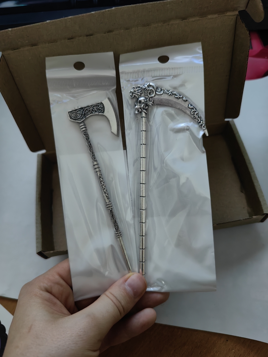 Вдохновленная славными викингами, заколка выполнена в виде миниатюрного топора, что придает ей необычный и завораживающий вид. Такой аксессуар не только надежно фиксирует волосы, но и становится ярким акцентом в вашем образе. Заколка подходит для самых разных стилей: от повседневного до торжественного, отлично дополняя как короткие, так и длинные прически.